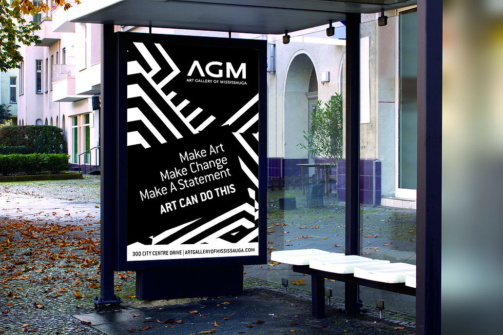 How do you draw attention to a public art gallery hidden away in an obscure corner of a mid-sized city’s municipal offices? Why, you roll out the camouflage, what else! This was our witty response to the challenge of rebranding the Art Gallery of Mississauga (AGM), a civic institution holding a fascinating, but often overlooked, collection of Canadian art. We created a bold identity based on the “razzle-dazzle” pattern used to camouflage ships during WWII. Our rebrand caught the public’s imagination and increased foot traffic substantially. The brand has been featured in various design blogs including Applied Arts Magazine, Design Edge Canada and Communication Arts. It received high honors from Graphis New York.