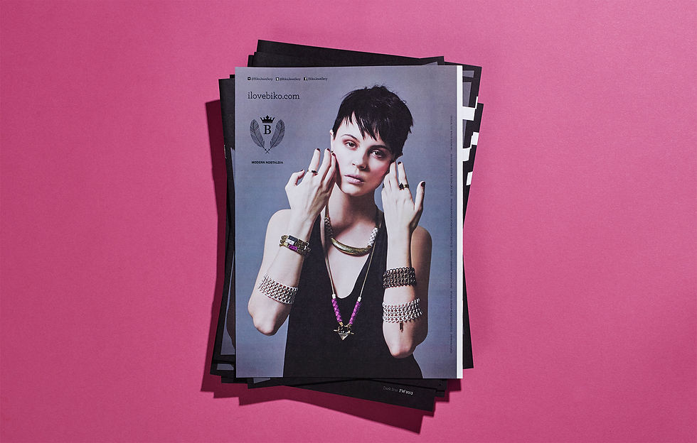 2014 Dark Star campaign for Toronto jewellery designer Biko. To intrigue Biko’s die-hard indie followers, we designed a dusky brochure that accentuated the darkness and dramatic angles of the Biko look. The brochure was enthusiastically received by the Biko sales team and proved a great success at PR events.