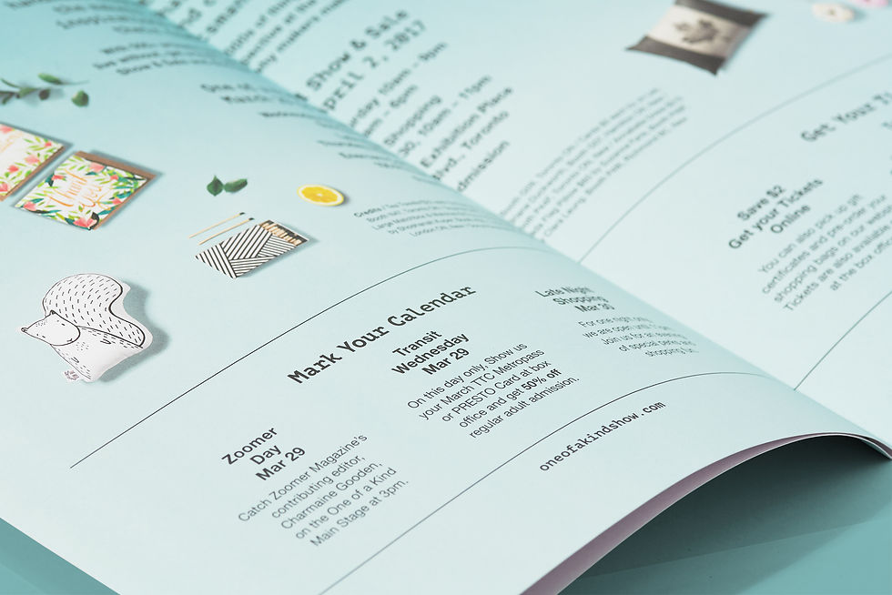 Our design and creative direction for Spring 2017 One of a Kind Show succeeded brilliantly in attracting a new, younger audience without alienating the show’s traditionally broad customer base. A clean and simple presentation of carefully curated products on a soft pastel geometric ground adds a new warmth and intrigue to the existing brand’s friendly tone and personality. The eye wanders among items arranged to inspire reflection and interest. Bold copy headlines